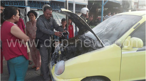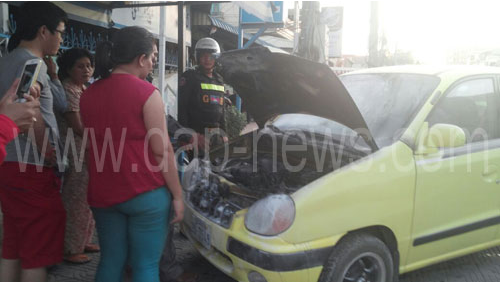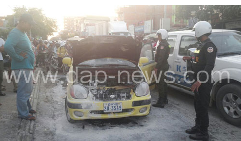 ភ្នំពេញ ៖ ហេតុការណ៍ភ្ញាក់ផ្អើលមួយ បានកើតឡើងបន្ទាប់ពី មានរថយន្តមួយគ្រឿង ដែលកំពុងបើកសុខៗ ស្រាប់តែផ្សែងហុយចេញពីខាងមុខផ្នែកម៉ាស៊ីន បង្កជាអណ្តាតភ្លើងឆាបឆេះចេញមកខាងក្រៅ ដោយមិនដឹងមូលហេតុ នៅចំណុចទល់ មុខនឹងផ្សារស្ទឹងមានជ័យ កាលពីវេលាម៉ោង៥ល្ងាច ថ្ងៃទី១៤ ខែធ្នូ ឆ្នាំ២០១៤ ស្ថិតតាមបណ្តោយផ្លូវផ្លូវព្រះមុន្នីរ៉េត ក្នុងសង្កាត់ស្ទឹងមានជ័យ ខណ្ឌមានជ័យ ។