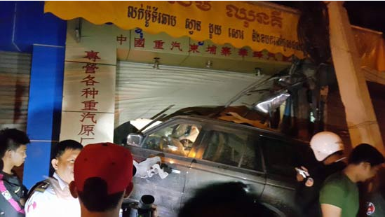 ភ្នំពេញៈ រថយន្ត Rangrover មួយគ្រឿង បានបើកបុកផ្ទះប្រជាពលរដ្ឋ ដែលរស់នៅស្ថិតក្បែរ រង្វង់មូល គួចកាណុង ក្នុងសសង្កាត់ស្រះចក ទាំងយប់ ទំនងជាម្ចាស់រថយន្ត ស្រវឹងស្រា បាត់បង់ស្មារតី ទើបបានជាបើក បុករះចូលផ្ទះប្រជាពលរដ្ឋដូច្នេះ។ ហេតុការណ៍នេះមិនបានបណ្តាលឲ្យនរណា ម្នាក់រងរបួសនោះទេ។