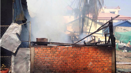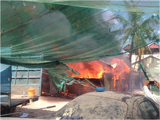 ភ្នំពេញ៖ សមត្ថកិច្ច បានឱ្យដឹងថា នៅរសៀល ថ្ងៃទី៦ ខែមីនា ឆ្នាំ២០១៥នេះ មានអគ្គិភ័យមួយ បានឆាបឆេះ ទីតាំងលក់ និងជួសជុល រថយន្ដមួយកន្លែង ស្ថិតនៅតាមបណ្ដោយផ្លូវលេខ ៥៩៨ (ផ្លូវជាសុផារ៉ា) ក្នុងសង្កាត់ ទួលសង្កែ ខណ្ឌឫស្សីកែវ។