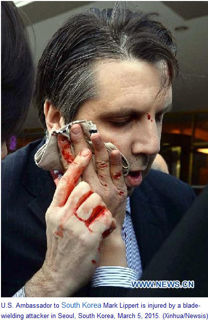 ព័ត៌មានអន្តរជាតិ ៖ នៅព្រឹកថ្ងៃព្រហស្បតិ៍ ប្រព័ន្ធផ្សព្វផ្សាយ នៅកូរ៉េខាងត្បូង បានរាយការណ៍ថា ប្រេសិត តំបន់ការ ទូតកំពួលរបស់ អាមេរិកប្រចាំ ប្រទេសកូរ៉េខាងត្បូងលោក ម៉ាក លីភើត បានទទួលរងការ វាយ ប្រហារ បណ្តាលឲ្យរង របួសហូរឈាមនៅលើផ្ទៃ មុខយ៉ាងដំណំ ដោយបុរស ប្រដាប់ អាវុធម្នាក់ ក្នុងទីក្រុង សេអ៊ូល។