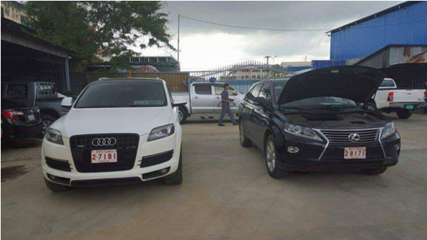 ភ្នំពេញ ៖ រថយន្ត Audi និង Lexus RX350 ២គ្រឿងអត់ពន្ធ ត្រូវបានកម្លាំង គយចល័តតាមចាប់ ដល់ក្នុងផ្ទះ មួយកន្លែង (នៅម្តុំទួលទំពូង) តាមបណ្តោយផ្លូវលេខ៤៤០ សង្កាត់ផ្សារទួលទំពូង១ ខណ្ឌចំការមន ដោយគយ ចល័ត ដឹកនាំដោយលោក ព្រាប គារ៉ាត សហការជាមួយកម្លាំងអាវុធហត្ថលើផ្ទៃប្រទេស និងអាវុធហត្ថរាជធានី ភ្នំពេញ នឹងមានការសម្របសម្រួលដោយព្រះរាជអាជ្ញារង សាលាដំបូងរាជធានីភ្នំពេញ មាស ច័ន្ទពិសិដ្ឋ នាព្រឹកថ្ងៃទី១០ ខែវិច្ឆិកា ឆ្នាំ២០១៥។