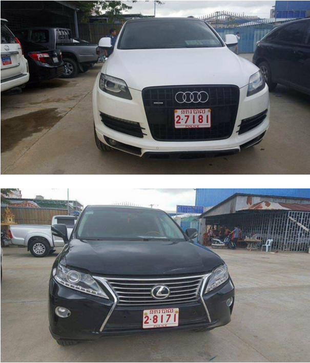 លោក ព្រាប គារ៉ាត ដែលដឹកនាំកម្លាំងគយចល័ត ចុះចាប់រថយន្តខាងលើនេះ បានថ្លែងបញ្ជាក់ប្រាប់មជ្ឈ មណ្ឌលព័ត៌មានដើមអម្ពិល ថា រថយន្តស៊េរីទំនើប២គ្រឿង ដែលចាប់បាននៅពេលនេះមានម៉ាក AUDI ស្លាក លេខ (នគរបាល)៖ 2-7181 ពណ៌ស និងមួយគ្រឿងម៉ាក Lexus RX350 ពណ៌ខ្មៅ ស្លាកលេខ (នគរបាល)៖ 2-8171។ ក្រោយពីចាប់បានរថយន្តទាំង ២គ្រឿង ត្រូវបានបញ្ជូនទៅកាន់ឃ្លាំងស្តុករបស់គយ នៅម្តុំផ្លូវ វេងស្រេង។