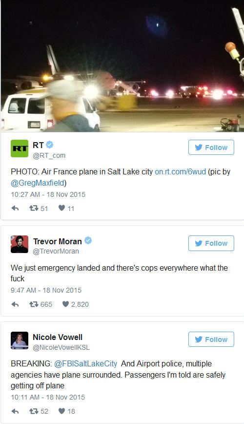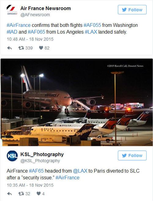 សេចក្តីរាយការណ៍ បញ្ជាក់អោយដឹងថា រាល់អ្នកដំណើរទាំងអស់ ត្រូវ បាន ជម្លៀសខ្លួនទៅកាន់ ទីកន្លែងដែលមានសុខសុវត្ថិភាព។ សេចក្តីថ្លែងការណ៍ពីក្រុមហ៊ុនអាកាសចរណ៍ Air France ឲ្យ ដឹងថា យន្តហោះ ២ គ្រឿង ដែល មាន ជើង ហោះហើរ AF055 និង AF065 សម្រេចចុះចតជា បន្ទាន់ ក្រោយទទួលបានការគម្រាមគំហែងបំផ្ទុះគ្រាប់បែក បន្ទាប់ ពី ហោះឡើង ។ យន្តហោះ ជើងហោះហើរ AF055 ឆ្ពោះ ទៅ កាន់ ទី ក្រុងប៉ារីស បន្ទាប់ពីហោះចេញពី រដ្ឋធានី វ៉ាស៊ិន តោន នោះ ត្រូវចុះចតជាបន្ទាន់ នៅទីក្រុង Halifax ។
