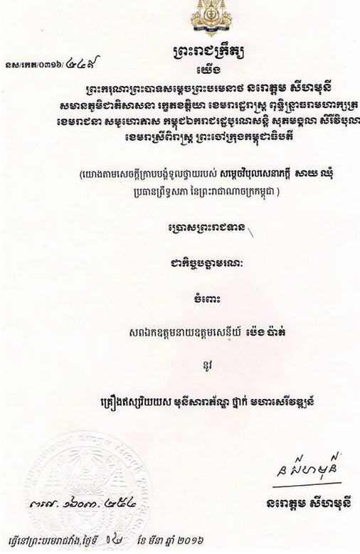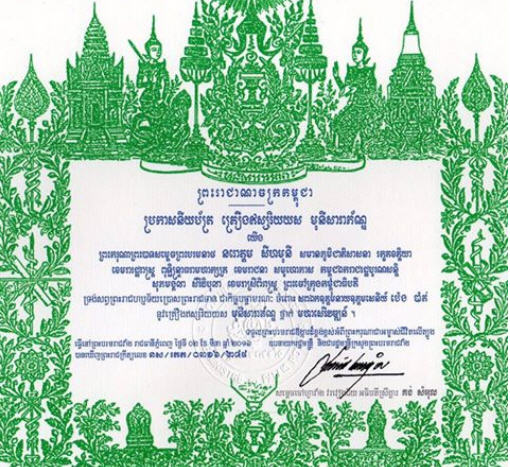 ខាងក្រោមនេះជាព្រះរាជក្រឹត្យរបស់ព្រះមហាក្សត្រ៖