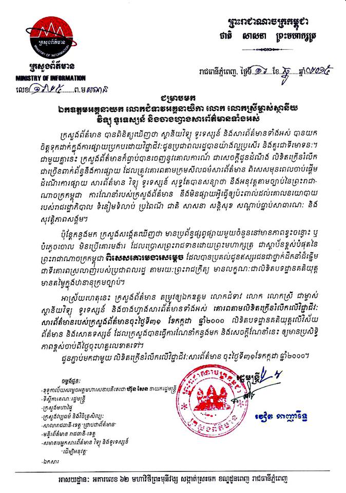 ខាងក្រោមនេះជាលិខិត របស់ក្រសួងព័ត៌មាន៖
