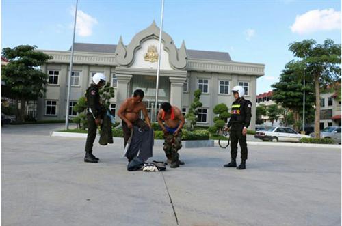 ភ្នំពេញ៖ បន្ទាប់ពីទទួលបានដំណឹងពី ប្រជាពលរដ្ឋថា មានជនសង្ស័យ២នាក់ បានស្លៀកពាក់ឯកសណ្ឋានយោធា ដើរសុំលុយពីប្រជាពលរដ្ឋរួចមក ទើបកម្លាំងអាវុធហត្ថខណ្ឌ ទួលគោក បានធ្វើការស្រាវជ្រាវ និងឃ្លាំមើលឈាន ដល់ការចាប់ឃាត់ខ្លួន ជនសង្ស័យទាំង២នាក់ នេះកាលពីថ្ងែទី ០១ ខែធ្នូ ឆ្នាំ២០១៥ នៅម្តុំផ្សារ ដេប៉ូ សង្កាត់ផ្សាដេប៉ូ៣ ខណ្ឌទួលគោក យកមកសួរនាំរួច ក៏បញ្ជូនទៅបញ្ជាការដ្ឋាន កងរាជអាវុធហត្ថរាជធានីភ្នំពេញ ដើម្បីបន្តការសាកសួរបន្ថែមទៀត និងបានបញ្ជូនទៅតុលាការហើយ។