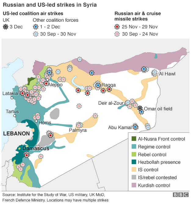 ក្រសួងកិច្ចការបរទេស ស៊ីរី អោយដឹងថា បណ្តាយន្តហោះចម្បាំង នៃកងកម្លាំងចម្រុះ ផ្លូវអាកាស នោះបានបើកការវាយប្រហារ បាញ់ម៉ីស៊ីល កំទេចជុំរុំនៅក្នុងខេត្ត Deir al-Zour ដែល ត្រូវបានគ្រប់ គ្រងដោយពួក ISIS ខណៈលោកបានហៅការវាយដណ្តើមគ្រប់គ្រងខេត្តមួយនេះ ថាជាការរំលោភ បំពានជាក់ស្តែង។ ទោះជាយ៉ាងណាក៏ដោយចុះ ភាគីសហរដ្ឋអាមេរិក នៅតែទទូច អះ អាងអោយ ដឹងថាខ្លួនពិតជាមិនបានបើកការវាយប្រហារផ្លូវអាកាសណាមួយ នៅតំបន់ ជិតជុំរុំខាងលើនោះទេ