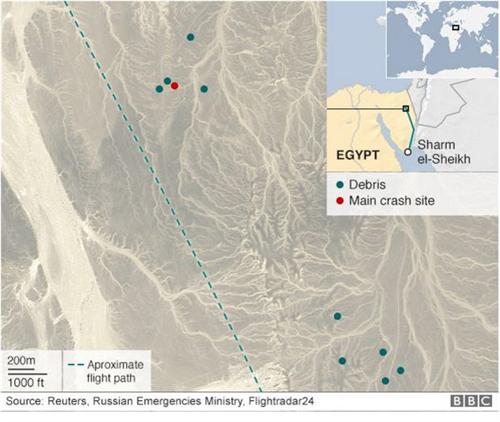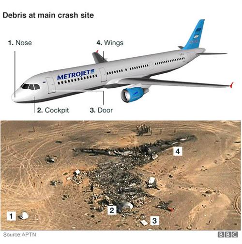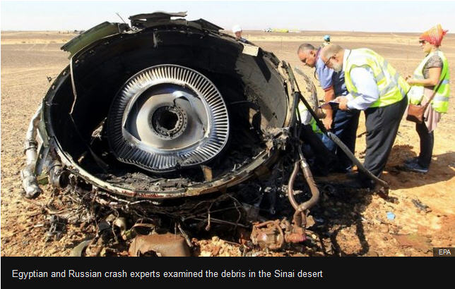 "Traces of foreign explosives" ឬ ដាននៃគ្រាប់បែកបំផ្ទុះ ពីបរទេស ត្រូវ បានក្រុមការងារ រក ឃើញមាននៅលើ បណ្តាបំណែកកំទេចកំទី យន្តហោះធ្លាក់ នេះបើយោង តាមសម្តី ប្រធានសន្តិ សុខ FSB របស់ប្រទេសរុស្ស៊ី លោក Alexander Bortnikov គូសបញ្ជាក់ដល់ ប្រធានាធិបតី ដែល ជាប្រមុខរដ្ឋ លោក Vladimir Putin ។