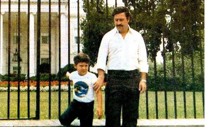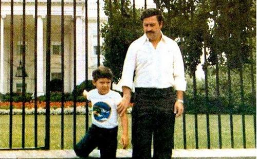 ព័ត៌មានអន្តរជាតិ ៖ ឈរ នៅ ពីមុខ សេតវិមាន សហរដ្ឋ អាមេរិក ជាមួយនឹង កូនប្រុសរបស់ខ្លួន សន្លឹករូបថតខាងក្រោម ពីឆ្នាំ ១៩៨១ ត្រូវបានគេដឹងថា ជារូបភាព ស្តេច គ្រឿងញៀន កូកាអ៊ីន កូឡុំប៊ី ពោល ជាស្តេចគ្រឿងញៀន មានបំផុត នៅក្នុងទំព័រ ប្រវត្តិសាស្រ្ត ។