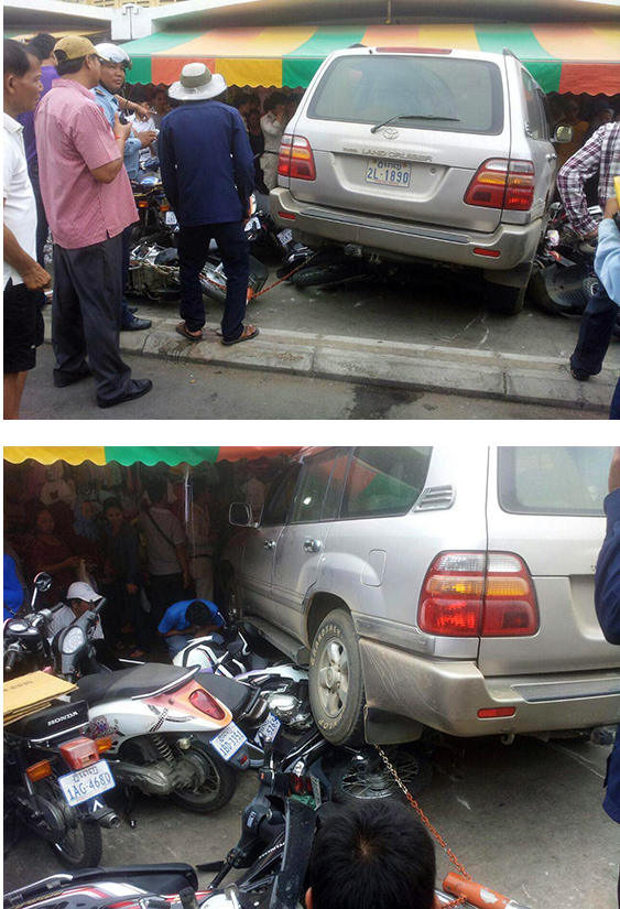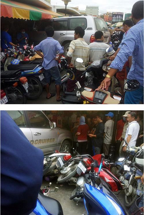 ហេតុការណ៍ជាន់ហ្គារថយន្ត ច្រឡំថា ហ្រ្វាំង នាំឲ្យបុកម៉ូតូ ដែលគេផ្ញើនៅក្នុងបរិវេណផ្សារថ្មីនេះ បានកើតឡើងនៅ ម៉ោង ៩ និង៣០នាទីព្រឹកថ្ងៃទី១៨ ខែកក្កដា ឆ្នាំ២០១៥នេះ។ ទោះបីជាយ៉ាងណាម្ចាស់រថយន្តមិនបានរត់គេច ខ្លួននោះទេ ដោយរង់ចាំដោះស្រាយ និងទូទាត់សងថ្លៃខូចខាតទាំងអស់។