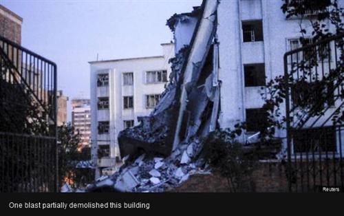 ពន្ធនាគារ ក៏ដូចជា ផ្សារទំនើប គឺជាសំណង់អាគារ ក្នុងចំណោមអាគារផ្សេងទៀតដែលរងនូវការ វាយប្រហារ ។ គំនរបាក់បែក នៃសំណង់អាគារស្ថិតនៅក្រោមការវាយប្រហារ មានពាសពេញផ្ទៃ ដី ។ សេចក្តីថ្លែងការណ៍ ពីមន្រ្តីប៉ូលីសក្នុងស្រុក អោយដឹងថា រយៈពេលជាង ២ ម៉ោងនារសៀល ថ្ងៃពុធម្សិលមិញនេះ គ្រាប់បែកច្រើនជាង ១៥ គ្រាប់ ត្រូវបានបំផ្ទុះឡើង នៅ ក្នុងតំបន់កើតហេតុ ខាងលើ ។ អាជ្ញាធរក្នុងស្រុកអោយដឹងថា ខ្លួនកំពុងតែបើកការស៊ើប អង្កេត ឯករាជ្យ កំណត់ឲ្យ បានពីលទ្ធភាព ក៏ដូចជា និន្នាការ នៃការវាយប្រហារ បំផ្ទុះគ្រាប់បែក ជាស៊េរី កណ្តាល ទីក្រុង លើកនេះ ៕
