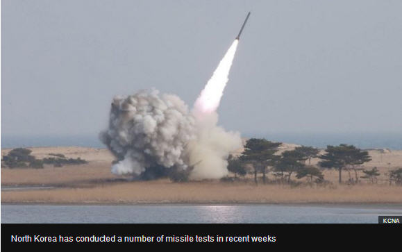 សេចក្តីរាយការណ៍ បញ្ជាក់ឲ្យដឹងថា កូរ៉េខាងជើងធ្លាប់បានធ្វើតេស្តិ៍សាកល្បងអាវុធនុយក្លេអ៊ែរ នៅ ថ្ងៃទី ៦ មករា ខណៈធ្លាប់បានធ្វើតេស្តិ៍បាញ់បង្ហោះផ្តាយរណបនៅថ្ងៃទី ៧កុុម្ភៈ ដែលសកម្មភាពទាំង នេះត្រូវបានគេមើលឲ្យឃើញថា បានរំលោភបំពានទៅនឹងការដាក់ទណ្ឌកម្ម ពីសំណាក់អង្គការ សហប្រជាជាតិ ។ ចាប់តាំងពីពេលនោះមក សហរដ្ឋអាមេរិក ដែលមានរដ្ឋបាល លោក អូបាម៉ា ជា ប្រមុខនោះ បន្តការដាក់ទណ្ឌកម្មធ្ងន់ធ្ងរបន្ថែមទៀត ទៅលើ ទីក្រុង ព្យុងយ៉ាង ៕