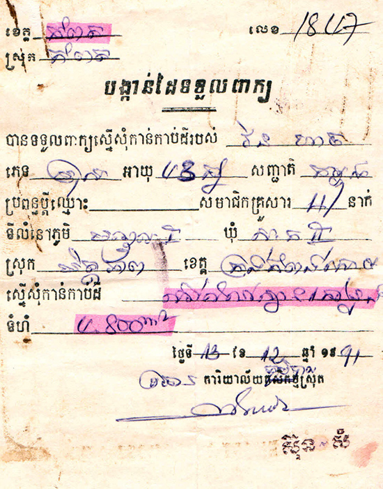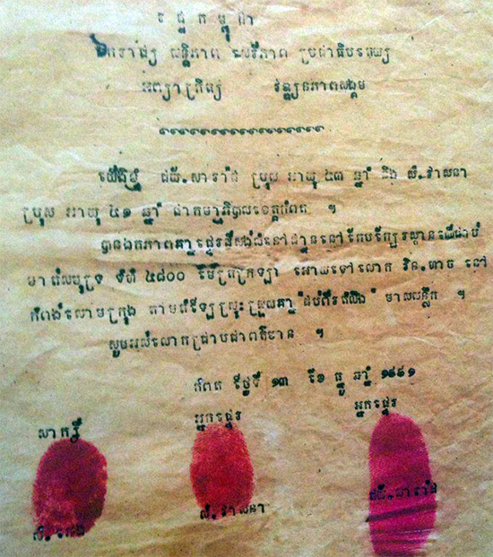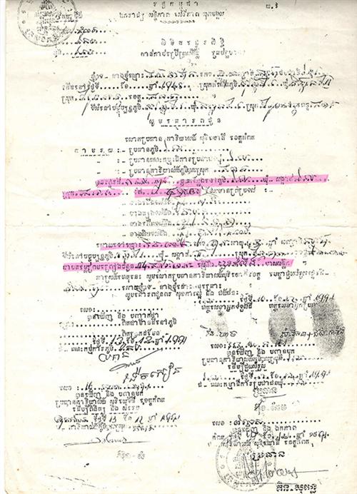 លោកស្រី ញ៉ែម មរកត បានបញ្ជាក់ប្រាប់មជ្ឈមណ្ឌលព័ត៌មានដើមអម្ពិលថា កាលពីឆ្នាំ១៩៩១ ប្តីរបស់អ្នកស្រី គឺលោក វិន ហាច រួមនិងបងប្អូនដទៃ ទៀតនៅខេត្តកំពត បានខិតខំរកស៊ី ក្រោយសម័យរំដោះ ៧ មករា ១៩៧៩ ពីបាតដៃទទេទាំងយ៉ាប់យឺនបំផុតនោះ បានសន្សំយកទៅទិញដីនៅក្នុងខេត្តកែបនេះ ចំនួន១២តម្លឹងមាស ពីឈ្មោះ សំ វាសនា ដោយមានការដឹងឮ និងមានលិខិតស្នាមត្រឹមត្រូវពីអាជ្ញាធរពាក់ព័ន្ធទាំងអស់។