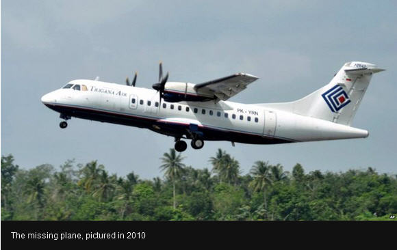 យន្តហោះក្រុមហ៊ុនអាកាសចរណ៍ The Trigana Air ជើង ហោះហើរ ATR42-300 ម៉ាស៊ីន ២ មួយ គ្រឿងនេះ ផ្ទុកអ្នកដំណើរពេញវ័យសរុប ៤៤ នាក់ ក្មេងៗ និងទារក ៥ នាក់ និងក្រុមសហសេវិក ៥ នាក់ផ្សេងទៀត សរុប ៥៤ នាក់ ។ ហោះចេញពី អាកាសយានដ្ឋាន អន្តរជាតិ Jayapura នៅវេលា ម៉ោង ១៤ និង ២១ នាទី យន្តហោះមួយគ្រឿងនេះ បានបាត់ការទាក់ទង មួយម៉ោងក្រោយបន្ទាប់ពី ហោះឡើង មិនដល់ ២៤ ម៉ោង ក៏មានសេចក្តីរាយការណ៍ថាបានធ្លាក់តែម្តង ៕