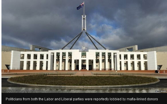 ព័ត៌មានអន្តរជាតិ ៖ សារព័ត៌មាននាំមុខ ប៊ីប៊ីស៊ី បានចេញសម្រង់អត្ថបទសារព័ត៌មានដោយយោង តាមការស៊ើបអង្កេត ពី Fairfax Media-ABC Four Corners អោយដឹងថាអ្នកនយោបាយជាន់ខ្ពស់ អូស្រ្តាលី គឺមានទំនាក់ទំនងជ្រៀតចូលដោយក្រុមម៉ាហ្វៀរ Calabrian ។