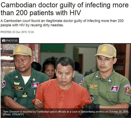 គួរបញ្ជាក់ថា តុលាការសាលាដំបូងខេត្តបាត់ដំបង នៅថ្ងៃព្រឹកថ្ងៃព្រហស្បតិ៍នេះ បានប្រកាសសាល ក្រម លើសំណុំរឿង ឆ្លងរាលដាលមេរោគអេដស៍ នៅភូមិរកា ឃុំរការ ស្រុកសង្កែ ដែលធ្វើឲ្យមនុស្ស ជិត ៣០០នាក់ ឆ្លងមេរោគអេដស៏ ប្រឆាំងនឹងគ្រូពេទ្យ យ៉ែន ជ្រិន។ ករណី ផ្ទុះពីការរីកររាលដាល នៃ ការចម្លងមេរោគអេដស៏នេះ កើតឡើង ក្នុង អំឡុង ដើមខែធ្នូ ឆ្នាំ២០១៤ ដែល អ្នកផ្ទុកមេរោគ អេដស៍ នៅឃុំរកា មានចំនួន ២៩០នាក់ ក្នុងចំណោមនោះ មានអ្នកស្លាប់ចំនួន ១០នាក់ គឺស្ត្រីចំនួន ៦នាក់ និងបុរស ៤នាក់៕