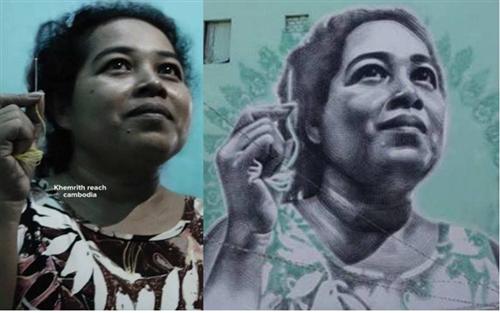 ក្នុងរូបគំនូរនេះ បង្ហាញពីស្រ្តីវ័យកណ្តាលម្នាក់ឈរកាន់ម្ជុល និងអំបោះ ហើយងើបមុខសម្លឹងទៅលើដែលអ្នកខ្លះនិយាយថា ជាវប្បធម៌ខ្មែរសុទ្ធសាធ ប៉ុន្តែមនុស្សចំនួនទៀតនិយាយថា សម្លៀកបំពាក់ស្រ្តីក្នុងរូបគំនូរនោះដូចជាមិនមែនជារបស់ខ្មែរទេ។ ក្រោយពីលុបរូបនេះ អាជ្ញាធររាជធានីក៏ទទួលរងនូវការរិះគន់ ពីអង្គការសង្គមស៊ីវិល និងសាធារណជនផងដែរ៕