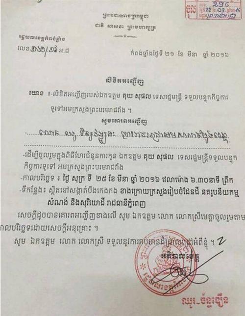 ខាងក្រោមនេះជាលិខិតដែលត្រូវបានគេបង្ហោះនៅលើ Facebook ដែលនាំឲ្យមានការរិះគន់ នៅលើបណ្ដាញទំនាក់ទំនង Facebook ដោយអង្គភាព Fresh News សូមមិនធ្វើអត្ថាធិប្បាយអ្វីឡើយ៕