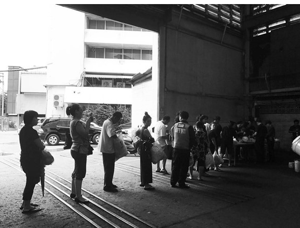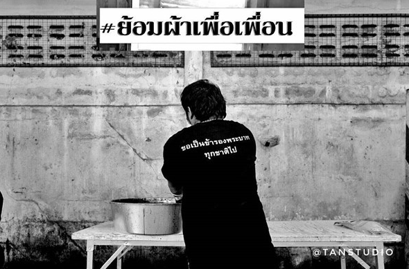 នាង Chompoo araya បានចូលរួមជាមួយនិងអ្នកដែលមានចិត្តសប្បុរសធម៍ជាច្រើនរូបទៀត ដើម្បីយកអាវពណ៍មកជ្រលង់ឲ្យទៅជាពណ៍ខ្មៅ ដើម្បីធ្វើការចែកជូនអ្នកដែលមិនមានថវិកាគ្រប់គ្រាន់ ក៏ដូចជាអ្នកមានជីវភាពខ្វះខាតផងដែរ ។