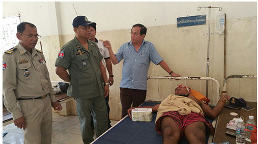 ក្រោយទទួលបាន ព័ត៏មានភ្លាម ថា មន្រ្តីនគរបាលរបស់ខ្លួន ទទួលរងរបួស ដោយសារជន បង្កគប់នឹងកែវ ពេលចុះទៅជួយ អន្តរាគន៏នោះ ស្នងការខេត្តកំពង់ចាម លោក បែន រ័ត្នបានមកសួរសុខទុក្ខនគរបាល ដែលរបួសក្នុងពេលបេសកកម្ម បែកក្បាល៣កន្លែង ហើយលោក ស្នងការឩបត្ថម៥០មុឺន និងអធិការជួយ២០ មុឺន ។