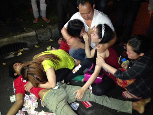 ភ្នំពេញ ៖ សំឡេងទ្រហោយំពីស្ដ្រីជា សាច់ញាតិនិងបងប្អូនអោបលើសពបុរសម្នាក់ ដែលបានដាច់ ដង្ហើមទៅនោះ បានធ្វើឱ្យប្រជា ពលរដ្ឋតាមដងផ្លូវចោមរោមមើលស្ទើរតែ ស្រក់ទឹកភ្នែកតាម ដោយមាន ការអាណិត អាសូរយ៉ាងពន់ពេក ចំពោះគ្រោះថ្នាក់ចរា ចរណ៍ ដែលបានសម្លាប់មនុស្សមួយប៉ព្រិច ភ្នែកយ៉ាងដូច្នេះ ។