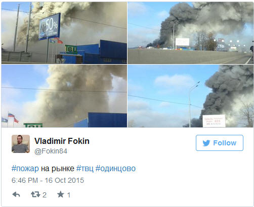 ព័ត៌មានអន្តរជាតិ ៖ ភ្នាក់ងារ សង្គ្រោះបន្ទាន់ក្នុងស្រុក ប្រទេស រុស្ស៊ីអោយដឹងថាមានករណីផ្ទុះឆេះ ដ៏ខ្លាំងក្លាមួយបានកើតឡើងនៅឯសំណង់ផ្សារ កំពង់ សាង សង់ ដ៏ធំមួយកន្លែង នៅជាយទីក្រុង Moscow ប្រទេសរុស្ស៊ី ។ ប្រភពដដែលបន្តអោយដឹងថា ខណៈនេះ បេសកម្ម ពន្លត់គ្រោះអគ្គីភ័យ កំពុងតែធ្វើឡើងយ៉ាងសស្រាក់សស្រាំ ដោយ ឧទ្ទម្ភាគចក្រ ចេញប្រតិបត្តិការ បាញ់ពន្លត់ ក៏ដូចជា ទម្លាក់ទឹក ។