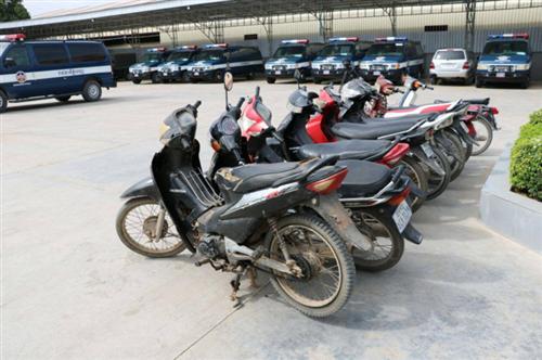 ទន្ទឹមនឹងនេះសមត្ថកិច្ចកងរាជអាវុធហត្ថរាជធានីភ្នំពេញបានដកហូតម៉ូតូ៧គ្រឿងដែលជាប់ពាក់ព័ន្ធនឹងអំពើលួច ប្លន់ ផងដែរ រួមមាន៖ ១ ម៉ាកហុងដា ពណ៌ខ្មៅ សេរីឆ្នាំ២០១៤ គ្មានស្លាកលេខ, ២ម៉ាកឃ្លីក ពណ៌ខ្មៅ គ្មានស្លាកលេខ, ៣ ម៉ាកឃ្លីក ពណ៌សគ្មានស្លាកលេខ, ៤ ម៉ាកឃ្លីក ពណ៌ក្រហម ស្លាកលេខ តាកែវ 1D-8803, ៥ ម៉ាកឃ្លីក ពណ៌ស ខ្មៅ គ្មានស្លាកលេខ, ៦ ម៉ូតូវីវ៉ា ពណ៌ខ្មៅ ស្លាកលេខ បាត់ដំបង 1F-7878, ៧ ម៉ាកឃ្លីក ពណ៌ខ្មៅ គ្មានស្លាកលេខ។
