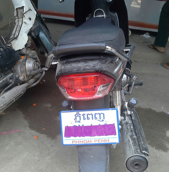 ភ្នំពេញ ៖ បុរសម្នាក់ ដោយសារតែគូ បក្ខដិបក្ខរបស់ខ្លួនតែងតែស៊ីដាច់ទូរស័ព្ទនោះ កើតជាកំហឹង រៀបចំ គម្រោងទៅវាយ ដោយជិះម៉ូតូ ហើយយកស្កុតមកបិទស្លាក លេខ គោលបំណងកុំឱ្យគេស្គាល់លេខម៉ូតូ នោះ ប៉ុន្ដែពេលជិះត្រឡប់ទៅផ្ទះវិញ ក៏ត្រូវ បាននគរបាលផ្នែកអន្ដរាគមន៍ខណ្ឌពោធិ៍សែន ជ័យ និង នគរបាល ប៉ុស្ដិ៍ចោមចៅធ្វើការឃាត់ ខ្លួន ដើម្បីយកទៅសួរ ដោយសង្ស័យថា អាចជាប់ព័ន្ធនិង បទល្មើស អ្វីមួយ ព្រោះតែ ការបិទស្លាកលេខម៉ូតូនោះ ។