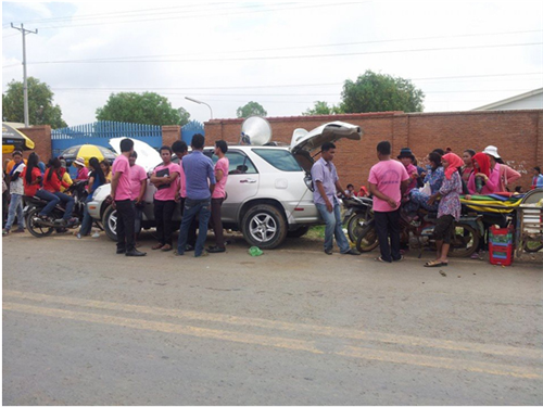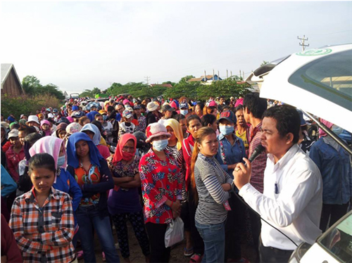 លោក សៀង សម្បត្តិ ប្រធានសហព័ន្ធសហជីពមិត្តភាពកម្មករ (WFUF) បានប្រាប់មជ្ឈមណ្ឌលព័ត៌មានដើម អម្ពិលថា នៅព្រឹកថ្ងៃនេះក្រុមកម្មករគ្រោងនាំគ្នាតវ៉ាបិទផ្លូវនៅម្តុំរោងចក្រក្នុងស្រុកអង្គស្នួល ខេត្តកណ្តាល តែត្រូវ បានអាជ្ញាធរ និងសមត្ថកិច្ចរារាំង ដូច្នេះពួកគេក៏សម្រេចចិត្តដើរដង្ហែក្បួនមកកាន់ក្រសួងការងារ ដើម្បីស្វែងរក កិច្ចអន្តរាគមន៍ពីរដ្ឋមន្រ្តីក្រសួងការងារ លោក អ៊ិត សំហេង។