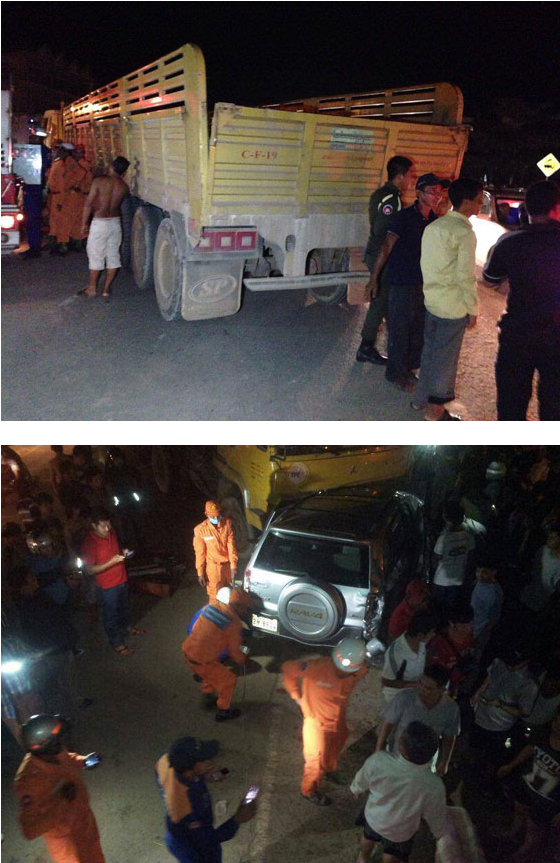 ភ្នំពេញ៖ មនុស្ស ៤នាក់បានស្លាប់ និង៥នាក់បានរងរបួស ក្នុងហេតុការណ៍គ្រោះថ្នាក់ចរាចរណ៍ ដ៏រន្ធត់មួយ ដោយ រថយន្ត និងម៉ូតូជាច្រើនគ្រឿងបុកបន្តកន្ទុយគ្នា នៅលើកំណាត់ផ្លូវជាតិ៤ ស្ថិតក្នុងភូមិកន្ទោកខាងជើង សង្កាត់ កន្ទោក ខណ្ឌពោធិ៍សែន កាលពីម៉ោង ៦ និង៣០នាទីយប់ ថ្ងៃទី១៣ ខែកញ្ញាឆ្នាំ ២០១៥ ។