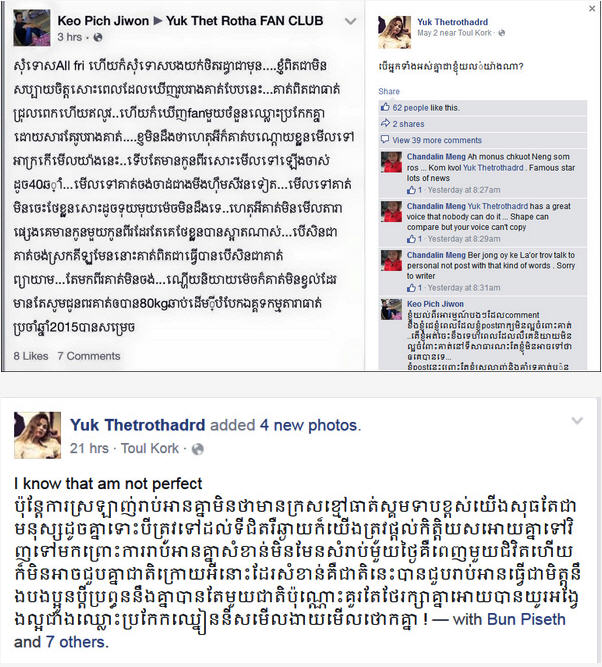 សារខ្លីមួយ បានសរសេររិះគន់ចំៗទៅលើ តារាចម្រៀងប្រចាំផលិតកម្ម ហង្សមាស អ្នកនាង យក់ ថិតរដ្ឋា ថា «ខ្ញុំពិតជាមិនសប្បាយចិត្តសោះ ពេលដែលឃើញ រូបរាងគាត់បែបនេះ ... គាត់ពិតជាធាត់ជ្រុលពេកហើយ ខ្ញុំពិតជាមិនដឹងថាហេតុអីគាត់បែរជាបណ្តោយខ្លួនមើលទៅ អាក្រក់មើលបែបនេះ ទើបមានកូន២សោះ មើលទៅឡើងចាស់ ដូចអាយុ៤០ឆ្នាំ.....»។