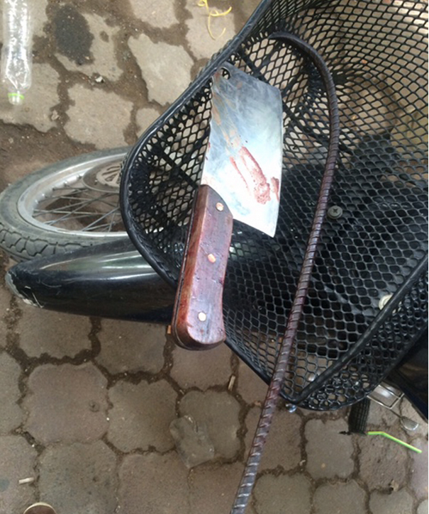 ពេលកំពុងជិះម៉ូតូ ជនល្មើសបានយកកាំបិតកាន់នឹងដៃ ទៅអារកមន្ដ្រីនគរបាលជាអ្នកបើកម៉ូតូរួចកាប់ទៅលើម្រាមដៃ បណ្ដាលឱ្យរងរបួស បង្កការភ្ញាក់ផ្អើលយ៉ាងខ្លាំង ។