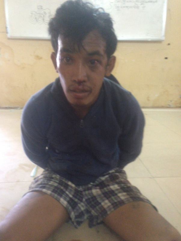 សេចក្ដីរាយការណ៍ពីកន្លែងកើតហេតុបាន ឱ្យដឹងថា នៅពេលឃើញជននេះ ដៃកាន់កាំបិតប៉័ងតោ ដើរតាមដងផ្លូវនោះ ប្រជាពលរដ្ឋ បានរាយការណ៍ទៅនគរបាលប៉ុស្ដិ៍រួចនគរបាលពីរនាក់បានចុះមកអន្ដរាគមន៍ភ្លាមៗ ដោយលួងលោម ឱ្យប្រគល់កាំបិត តែជននេះ មិនព្រមប្រគល់ សុខជិះម៉ូតូជាមួយសមត្ថកិច្ច ទាំងដៃកាន់កាំបិត យកទៅកាន់ប៉ុស្ដិ៍នគរបាល ដោយជនសង្ស័យអង្គុយកណ្ដាល ។