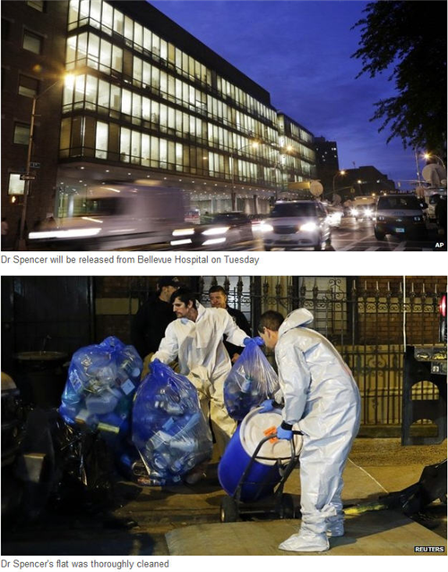 សេចក្តីថ្លែងការណ៍ ពីមន្រ្តីសុខាភិបាល ប្រចាំ ក្រុង អះអាង អោយដឹងថា វេជ្ជបណ្ឌិត លោក Craig Spencer ត្រូវបានបញ្ជាក់បានថា ជាសះស្បែក ពីវីរុស សាហាវប្រភេទនេះហើយ ។ គួរបញ្ជាក់ លោក បានបម្រើការជាវេជ្ជបណ្ឌិតមនុស្សធម៌ សម្រាប់ Medecins Sans Frontieres (MSF) នៅក្នុងប្រទេស Guinea ដោយនៅក្នុងនោះ មានការពិនិត្យ និង បានរកឃើញ ថាលោកបានផ្ទុកមេរោក Ebola ពិតប្រា កដមែនកាលពីថ្ងៃទី ២៣ តុលាកន្លងទៅនេះ បន្ទាប់ពីវិលចូលទឹកដី សហរដ្ឋអាមេរិក ។