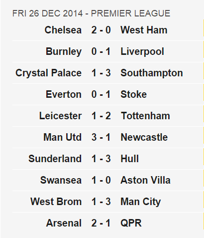 លទ្ធផលប្រកួត កាលពីយប់ថ្ងៃ សុក្រ ទី ២៦ ខែ ធ្នូ ឆ្នាំ ២០១៤