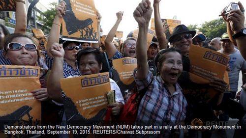 ព័ត៌មានអន្តរជាតិ ៖ ក្រុមសកម្មជន មាននិន្នការ គាំទ្រលទ្ធិប្រជាធិបតេយ្យអោយដឹងនៅថ្ងៃអាទិត្យ ម្សិលមិញនេះថា ពួកគេមានគម្រោង ធ្វើបាតុកម្ម សាជាថ្មីម្តងទៀត បន្ទាប់ពីពួកគេធ្លាប់បានធ្វើការ បាតុកម្មប្រឆាំងនយោបាយធំបំផុត នៅក្រុង បាងកក ចាប់តាំងពី រដ្ឋាភិបាល យោធា បានធ្វើរដ្ឋប្រ ហារចូលកាន់អំណាច អំឡុងខែ ឧសភា ឆ្នាំ ២០១៤ កន្លងទៅនេះ ។
