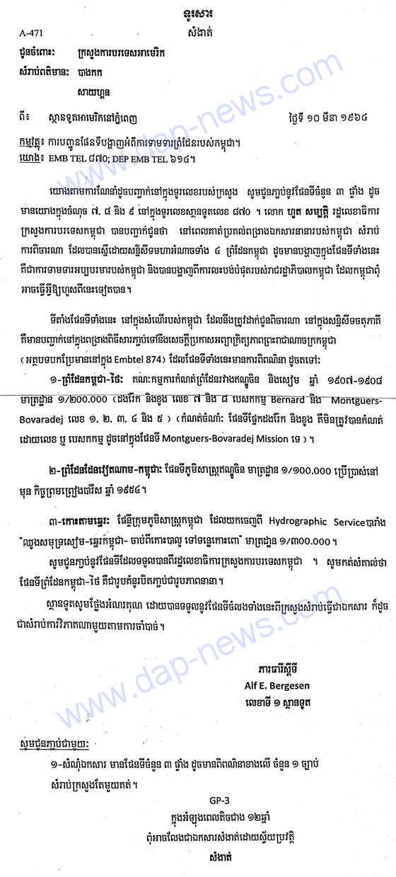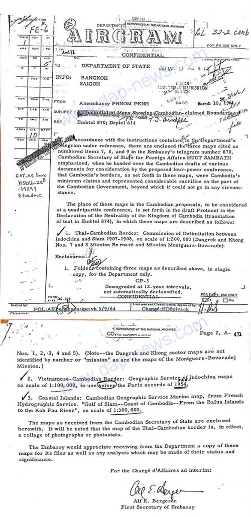 ធ្លាយលិខិតសម្ងាត់ របស់ស្ថានទូត អាមេរិកនៅភ្នំពេញ ផ្ញើទៅក្រសួងការ បរទេសអាមេរិក ពាក់ព័ន្ធបញ្ហា ព្រំដែន