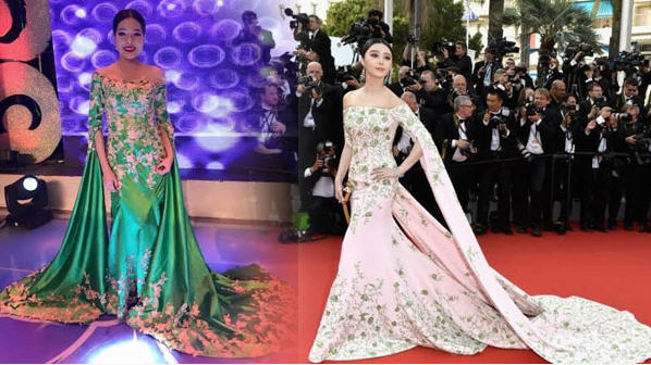 តារាល្បីឈ្មោះ ប្រចាំប្រទេសចិននាង Fan Bingbing បានស្លៀកសម្លៀកបំពាក់នោះ ចូលរួមមហោស្រពភាពយន្ត នៅទីក្រុងកាន ប្រទេសបារាំង ដែលនាងប្រៀប បានម្ចាស់ក្សត្រី ដើរលើកំរាលព្រំក្រហម ។ ចំណែកតារាចម្រៀងប្រចាំប្រទេសកម្ពុជា អ្នកនាង សឿ សុធារ៉ា ក៏បានគ្រងឈុត ស្រដៀងគ្នានេះ ឡើងបង្ហាញវត្តមាននៅលើកញ្ចក់ទូរទស្សន៍ យ៉ាងស្រស់ស្អាត ផងដែរ។