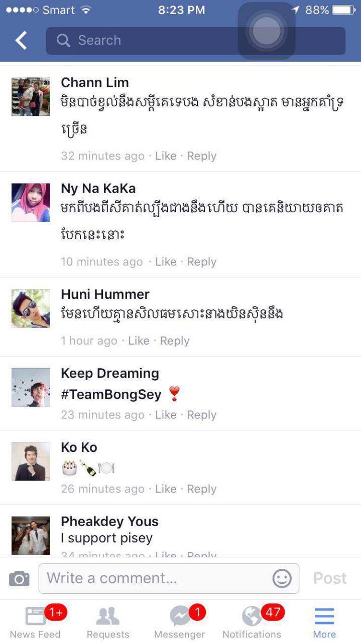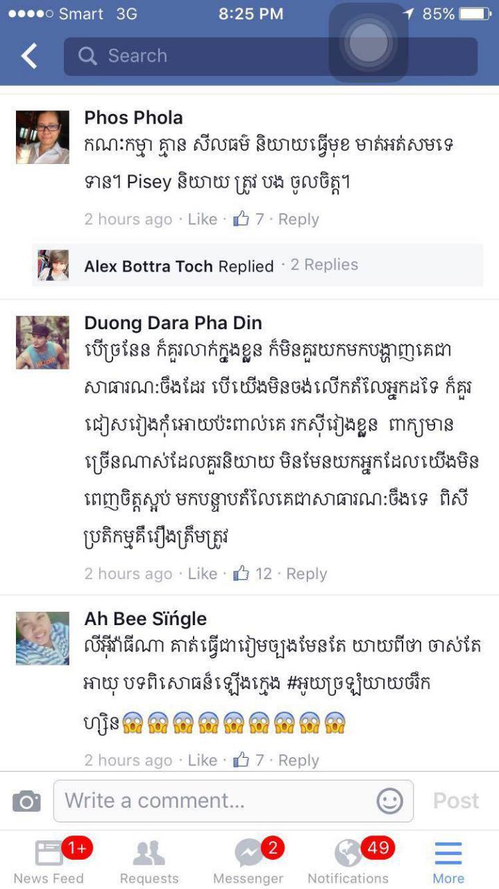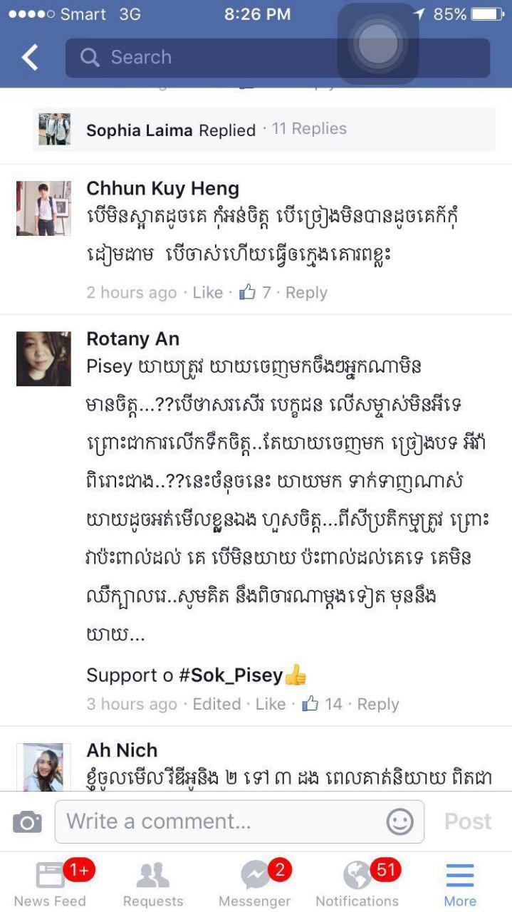 មហាជនជាច្រើននៅលើបណ្តាញសង្គម Facebook បង្ហាញអារម្មណ៍មិនពេញចិត្តចំពោះសម្តី និងចរិតរបស់កញ្ញា លី អ៉ីវ៉ាធីណា ដែលបានបោះពាក្យសម្តី ផ្លែផ្កាដាក់តារាចម្រៀង សុខ ពិសី។