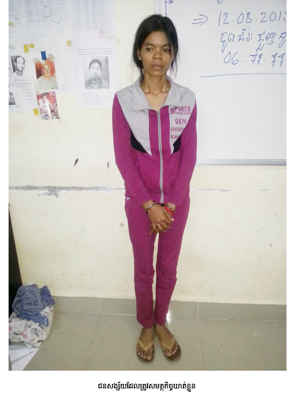 នគរបាលខណ្ឌដង្កោបានឲ្យដឹងថា ជនសង្ស័យដែលឃាត់ខ្លួនមានឈ្មោះ ភន់ ស្រីនាង ភេទស្រី អាយុ២៨ឆ្នាំ មុខរបរលក់ត្រី ស្នាក់នៅភូមិខ្វា សង្កាត់ដង្កោ ខណ្ឌដង្កោ រាជធានីភ្នំពេញ។ ចំណែកជនសង្ស័យម្នាក់ទៀត ដែលរត់គេចខ្លួនបាត់ ក្រោយធ្វើសកម្មភាពមិនបានសម្រេចនោះ ឈ្មោះ ដាវីត ភេទប្រុស មិនស្គាល់អាសយដ្ឋាន។ ចំណែកជនរងគ្រោះឈ្មោះ រិទ្ធ ស៊ីនឿន ភេទស្រី អាយុ ២៩ឆ្នាំ មុខរបរលក់ដូរ ស្នាក់នៅភូមិឫស្សី សង្កាត់ស្ទឹងមានជ័យ ខណ្ឌមានជ័យ។