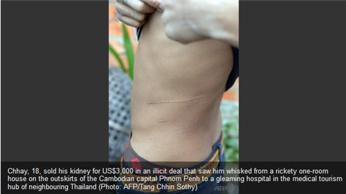 យុវវ័យ វ័យក្មេងរូបនេះ ខណៈផ្តល់ជាកិច្ចសម្ភាសន៍ ដល់ភ្នាក់ងារសារព័ត៌មាន AFP ស្នើសុំ មិនបញ្ជេញ ឈ្មោះពិតនោះអោយដឹងថា អ្នកជិតខាងបានបញ្ជុះបញ្ជូលលោក រួមទាំងបងប្អូនប្រុស ពីរនាក់ផ្សេងៗ ទៀតអោយមានការដោះដូរ លក់ក្រលៀន ទៅអោយ ក្រុម មនុស្ស ជាអ្នកមាន ដើម្បីមានប្រាក់ដោះ បំ ណុល "អ្នកជិតខាងបាននិយាយថា ៖ ឯង គឺជាអ្នកក្រ គ្មានលុយ ដូច្នេះ បើសិនណា មានការសម្រេច ចិត្តថាអាចលក់ក្រលៀនបាន នោះអាចច្បាស់ជាមិនលុយ សងបំណុលគ្រួសារជាក់ជាមិនខាន" ។