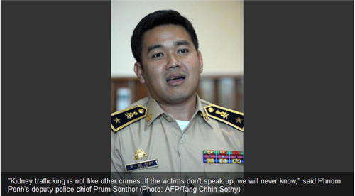 លោក Prum Sonthor អនុប្រធានមន្រ្តីប៉ូលីស សរបញ្ជាក់អោយដឹងថា ៖ ការជួយដូរ តម្រងនោម វាមិន ដូចទៅនឹងបទឧក្រិដ្ឋផ្សេងៗទៀត នោះទេ ល្គិកណា ជនរងគ្រោះ មិននិយាយ នោះយើងខ្ញុំពិតជាមិន បានដឹងដូចគ្នាដែរ ។ ជាការពិត ចលករមួយនេះ អាចប្លែក ធ្លាយទៅបាន ខណៈជនរងគ្រោះបានដាក់ ពាក្យប្តឹង ក្រុមឈ្មួញ ស្របពេលដែលពួកគេបានទទួលប្រាក់ដល់ទៅ ១០,០០០ ដុល្លារ ពីការលះបង់ របស់ខ្លួន ជាជនរងគ្រោះ ទទួលបានប្រាក់ត្រឹមតែ ខ្ទង់ពាន់ដុល្លារតែប៉ុណ្ណោះ កាលពីអំឡុងខែមិថុនា កន្លងទៅនេះ ។