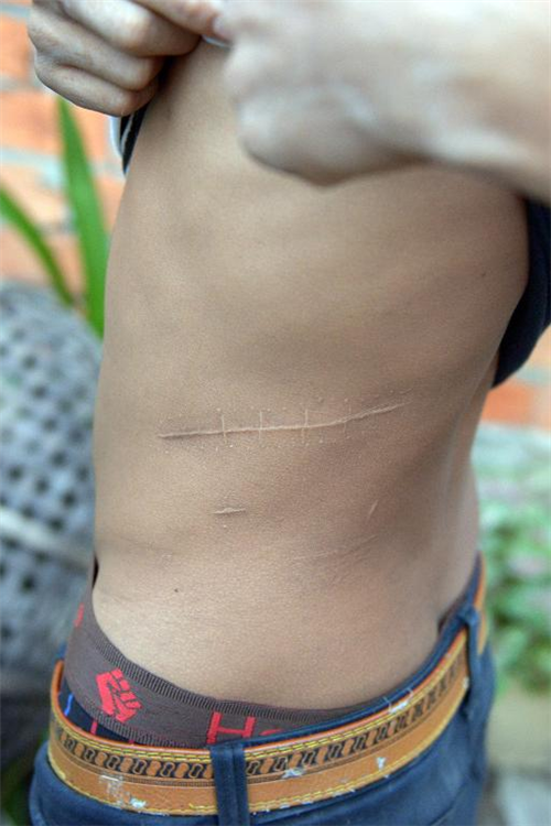 ព័ត៌មានអន្តរជាតិ ៖ ស្នាមដែរ មានរយៈប្រវែង ៧ អ៊ីង រត់តាមអង្កត់ទ្រូង ផ្នែកខាងឆ្វេងនៃដងខ្លួនដ៏ស្គម ស្គាំងរបស់គាត់ ជាការរំលឹកដល់ប្រតិបត្តិការធ្វើការវះកាត់ ដែលជាក្តីសង្ឃឹមតែមួយគត់ អាច ជួយគ្រួ សារចាកចេញពីការជំពាក់បំណុលគេ តែផ្ទុយទៅវិញ គាត់ទទួលបានតែភាពអាម៉ាស់ តែប៉ុណ្ណោះ ។