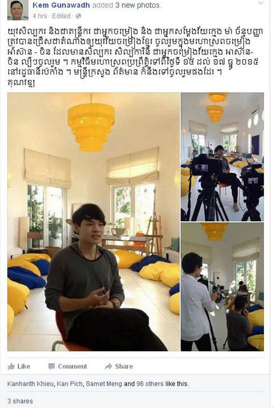 យោងតាម Account Facebook របស់ លោក កឹម គុណវឌ្ឍន៍ អគ្គនាយកទូរទស្សន៍ជាតិ បានសរសេរបង្ហោះនៅលើ Facebook ផ្ទាល់ខ្លួនថា លោក ម៉ា ច័ន្ទបញ្ញា ដែលជាតន្ត្រីករ ជាអ្នកចម្រៀង និងជាអ្នកសម្តែងវ័យក្មេង ត្រូវបាន ជ្រើសជាតំណាង ឲ្យយុវវ័យចម្រៀងខ្មែរ ចូលរួមប្រឡងក្នុងមហោស្រពចម្រៀង អាស៊ាន-ចិន ដែលមានសិល្បករ សិល្បការិនី ជាអ្នកចម្រៀងវ័យក្មេងមកពីបណ្ដាប្រទេសក្នុងតំបន់ អាស៊ាន និងក្នុងប្រទេសចិន ល្បីៗជាច្រើនដួង ដើម្បីចូលរួម ប្រកួតប្រជែងគ្នា ។