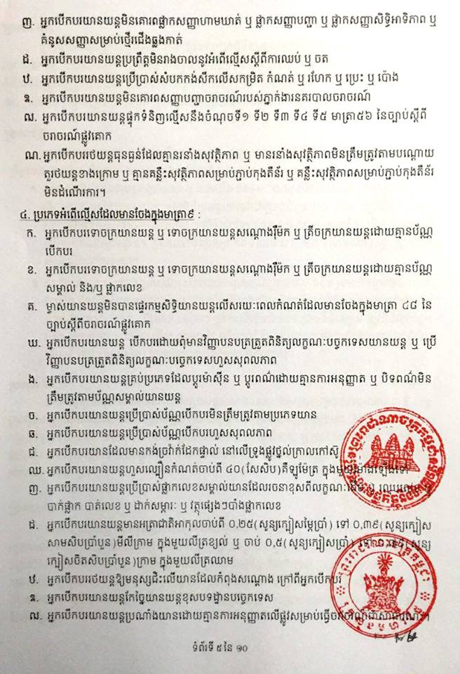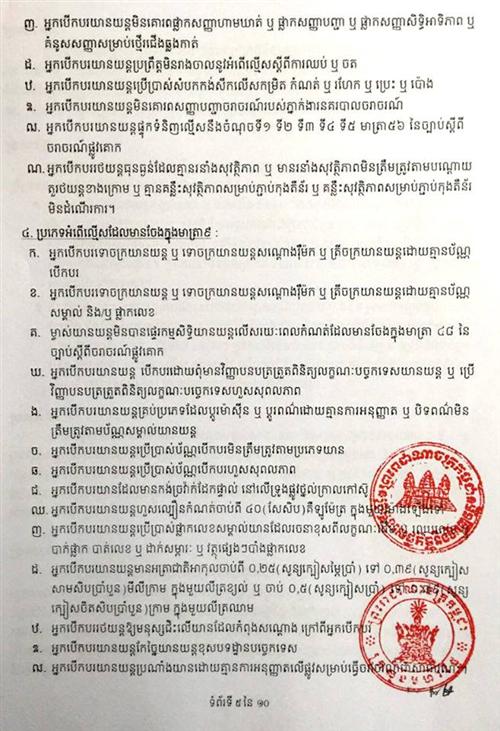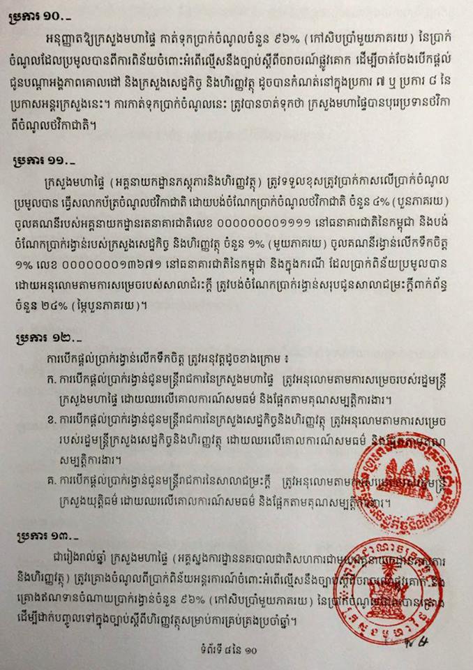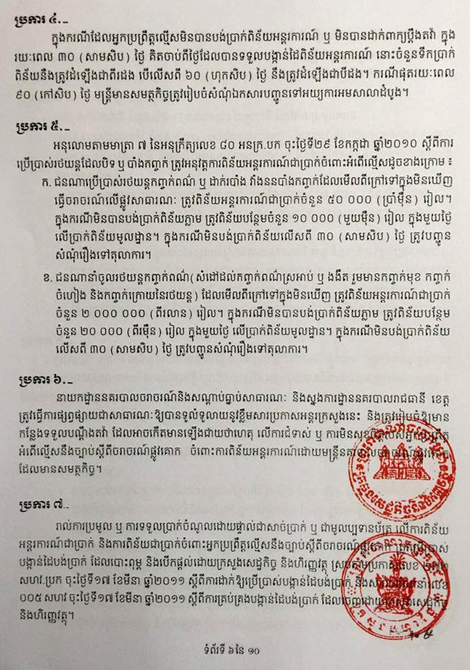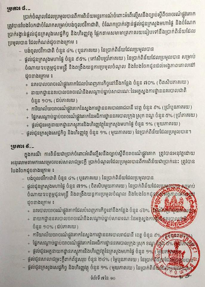 -បង់ចូលថវិកាជាតិចំនួន ៤ភាគរយ នៃប្រាក់ពិន័យដែលប្រមូលបាន