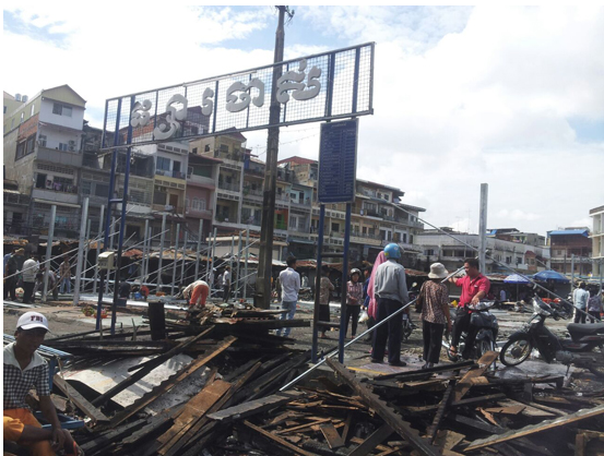 សូមបញ្ជាក់ថា អគ្គិភ័យបានលេប ត្របាក់តូបធ្វើពីឈើប្រក់ស័ង្កសីនៅផ្សារ ចាស់អស់ ២៤៤តូប សរុបជាទឹកប្រាក់ ជាង ១លានដុល្លារ កាលពីថ្ងៃទី២៤ ខែវិច្ឆិកា កន្លងទៅនេះ ។ ក្រោយការឆេះតូបពាក្យ ចចាមអារាមជាច្រើនបានលេច ឡើង ស្រោចស្រពមកលើអាជ្ញាធររាជធានីភ្នំពេញ ថា មានផែនការយកផ្សារនេះទៅឱ្យក្រុម ហ៊ុនឯកជនអភិវឌ្ឍន៍ ។