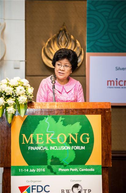 “គំរូអាជីវកម្ម បច្ចេកវិទ្យា និងបណ្ដាញបញ្ជូនថ្មីបង្កើតឡើងដោយធនាគារពាណិជ្ជ គ្រឹះស្ថានមីក្រូហិរញ្ញវត្ថុនានា អង្គការក្រៅរដ្ឋាភិបាល និងអ្នកផ្ដល់សេវាកម្មហិរញ្ញវត្ថុដទៃទៀតគឺកំពុងតែបិទគំលាតដកចេញហិរញ្ញវត្ថុ និងចូលរួមដល់កំណើនបរិយាប័ណ្ណ និងការកាត់បន្ថយភាពក្រីក្រ។ វេទិកាបរិយាប័ណ្ណហិរញ្ញវត្ថុមេគង្គលើកទីមួយបានលើកឡើងអំពីវឌ្ឍនភាពបច្ចុប្បន្ន រួមទាំងបណ្ដាប្រទេស និងដែគូពាក់ព័ន្ធដែលមានសក្ដានុពលក្នុងតំបន់មេគង្គដើម្បីធ្វើការរួមគ្នាជាធ្លុងមួយលើប្រព័ន្ធអេកូហិរញ្ញវត្ថុថាមវន្តសម្រាប់ជាប្រយោជន៍ដល់ជនក្រីក្រ និងអ្នកជួបការលំបាក”