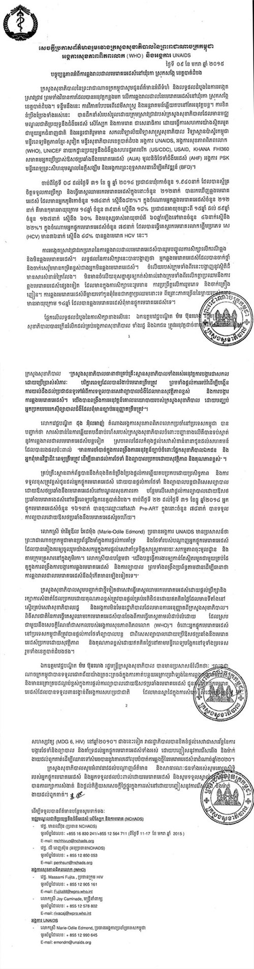លោក ដុង អ៊ិលអាញ់ តំណាងអង្គការសុខភាពពិភពលោក ប្រចាំកម្ពុជា បានបញ្ជាក់ថា «សារៈ សំខាន់នៃការឆ្លើយតប ដ៏ឆាប់រហ័ស របស់ក្រសួងសុខាភិបាល ចំពោះបញ្ហាខាងលើ គឺបានទប់ ស្កាត់នូវការឆ្លង មេរោគអេដស៍ បន្តទៀត» ។