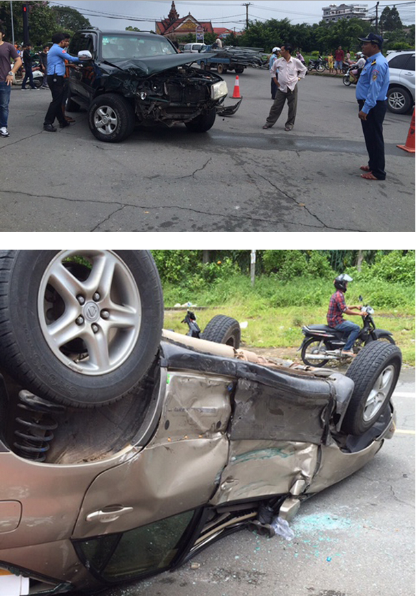 ព្រះសីហនុ ៖ នៅរសៀលថ្ងៃទី២៤ ខែកញ្ញា ឆ្នាំ២០១៥ លើវិថីឯករាជ្យ ត្រង់ចំណុច មុខការិយាល័យ កណ្តាលនគរបាលសណ្តាប់ធ្នាប់សាធារណៈ ក្នុងភូមិ៣ សង្កាត់៣ ក្រុង-ខេត្តព្រះសីហនុ មានករណីគ្រោះថ្នាក់ចរាចរ មួយកើតឡើង រវាងរថយន្ត០១គ្រឿងម៉ាក LEXUS RX300 ពណ៌ទឹកមាស មានទិសដៅពី ត្បូង ទៅជើង លុះមកដល់ចំណុចកើតហេតុ បានបុករថយន្ត១គ្រឿងម៉ាក LANDCRUISER ពណ៌ខ្មៅ មានទិសដៅពី លិចទៅកើត។