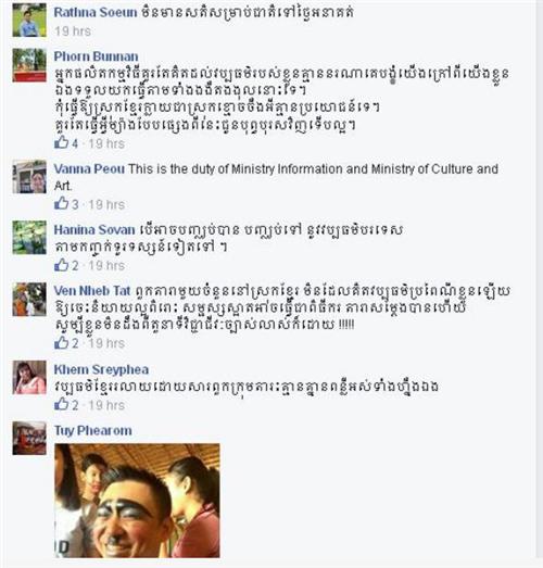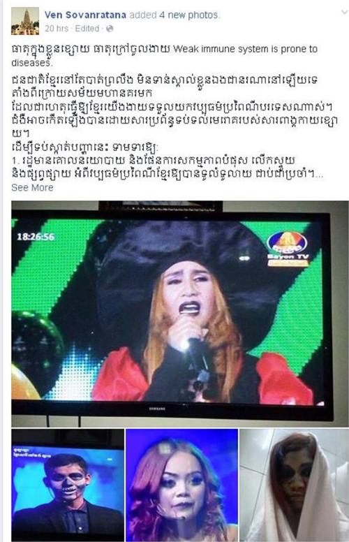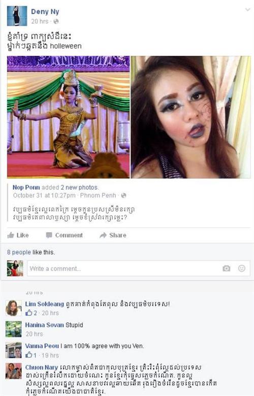 ក្រោយពីបានឃើញអ្នកសិល្បៈ ក្នុងស្រុកជាច្រើន បាននាំគ្នាបញ្ជៀបវប្បធម៌បរទេស ចូលមកក្នុងប្រទេសកម្ពុជានោះ មានអ្នកលេង Facebook ជាច្រើន បានបង្ហាញសាររិះគន់ ដោយនៅក្នុងនោះមាន Account Facebook មួយមានឈ្មោះថា “Deny Ny” បានធ្វើការបង្ហោះ រូប២ សន្លឹកប្រៀបធៀប ពីប្រពៃណីខ្មែរ និងវប្បធម៌បរទេស ដោយមានភ្ជាប់មកជាមួយពាក្យសម្តី រិះគន់ថា «ខ្ញុំគាំទ្រ ពាក្យសម្តី “វប្បធម៌ខ្មែរល្អពេកក្រៃ ម្តេចកូនប្រុសស្រីមិនរក្សា , វប្បធម៌គេពាលាឫស្យា ម្តេចខំស្រវ៉ារក្សាម្លេះ” ម្នាក់ៗឆ្កួតនឹង Holleween »។